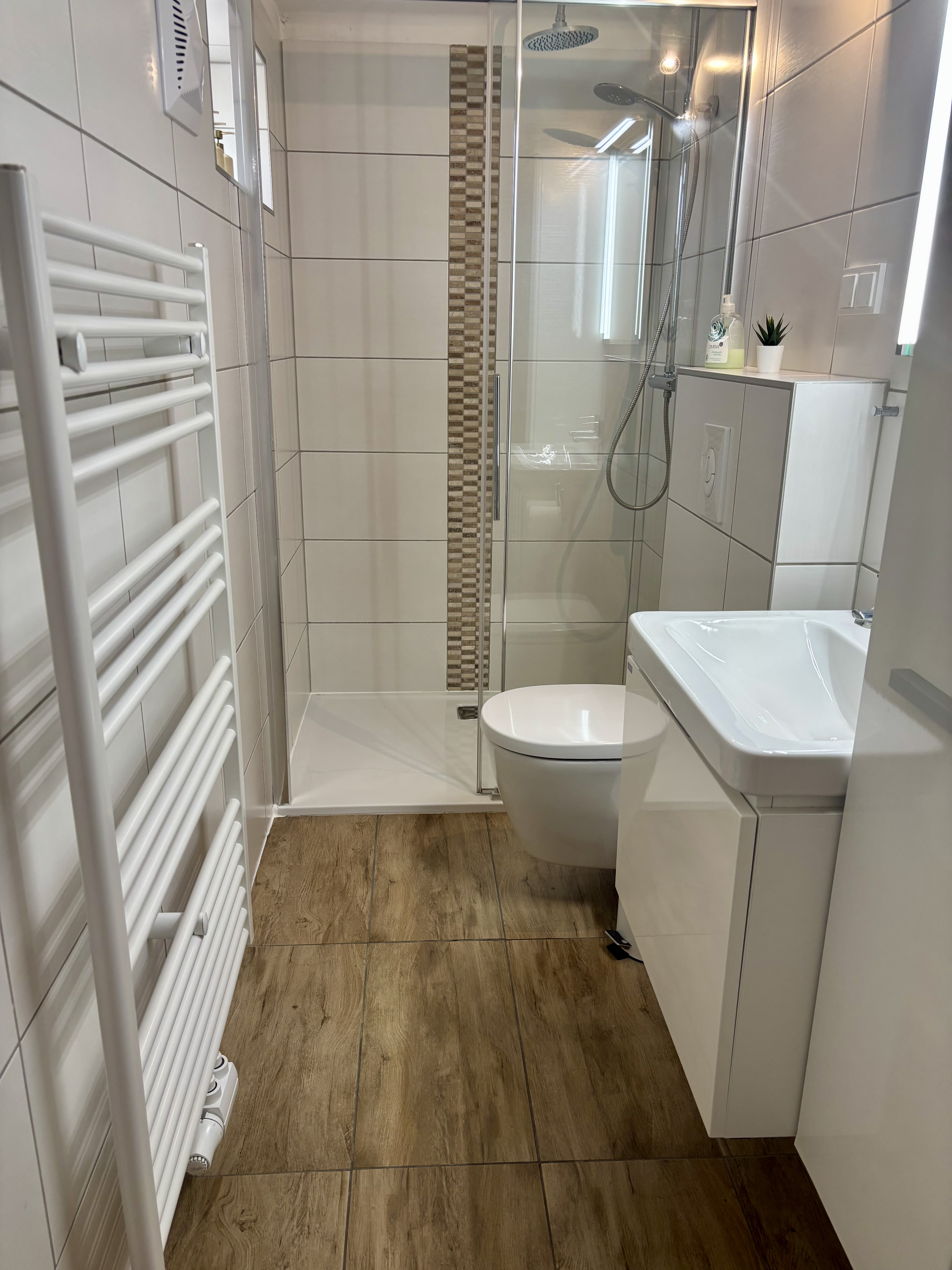 • Badezimmer mit Dusche, und WC;