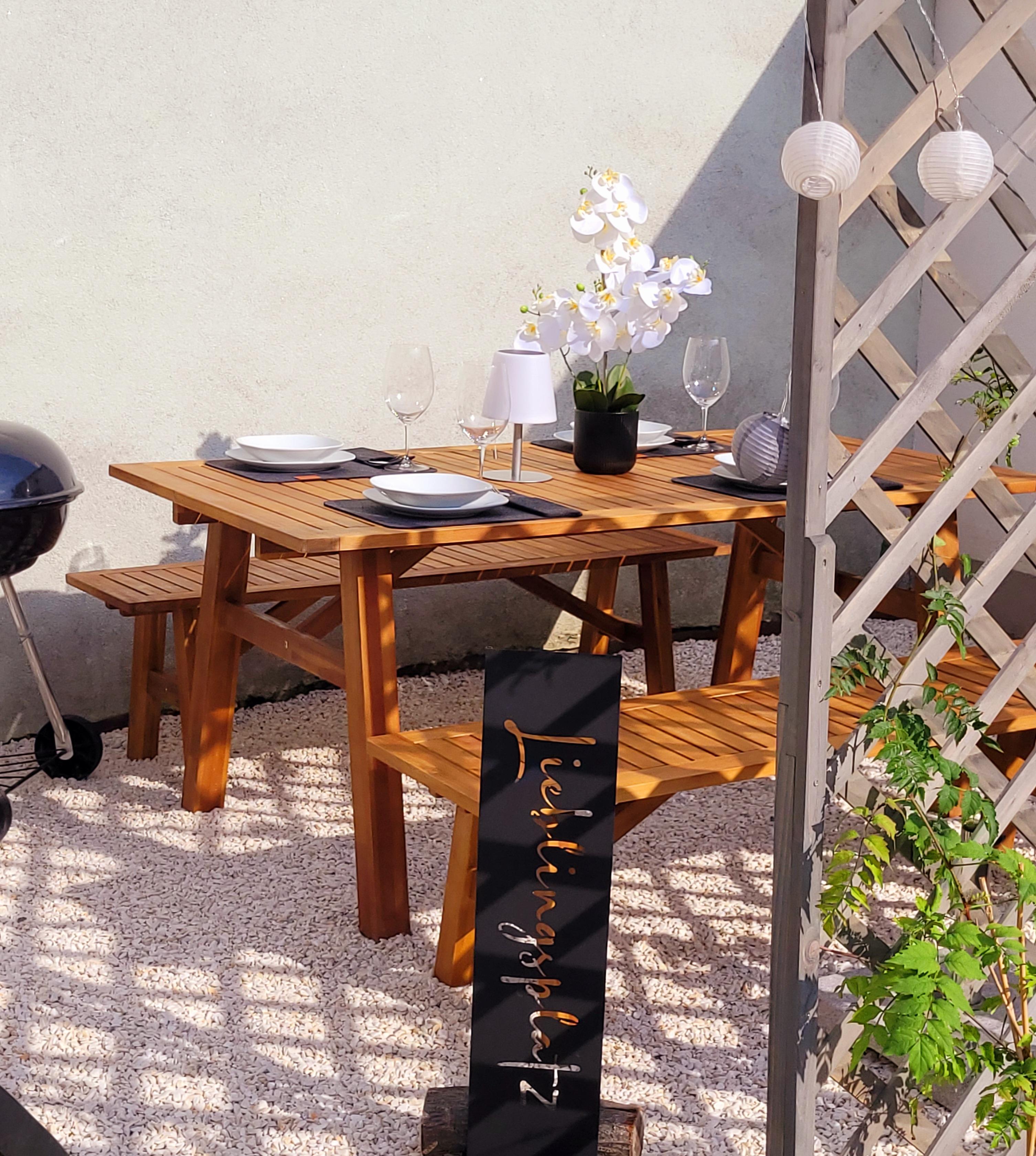 Der im Innenhof gelegene Garten bietet eine gemütliche Sitzgelegenheit im Freien, welche zu jeder Tageszeit zum Verweilen einlädt.