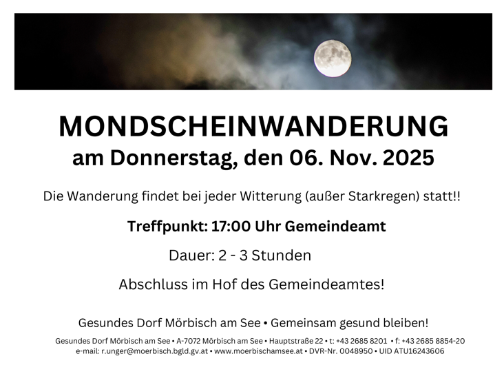 Die Wanderung dauert ca. 2–3 Stunden und findet bei jeder Witterung statt – außer bei starkem Regen. Zum Abschluss treffen wir uns im Hof des Gemeindeamtes, um den Abend gemütlich ausklingen zu lassen. 🌙✨