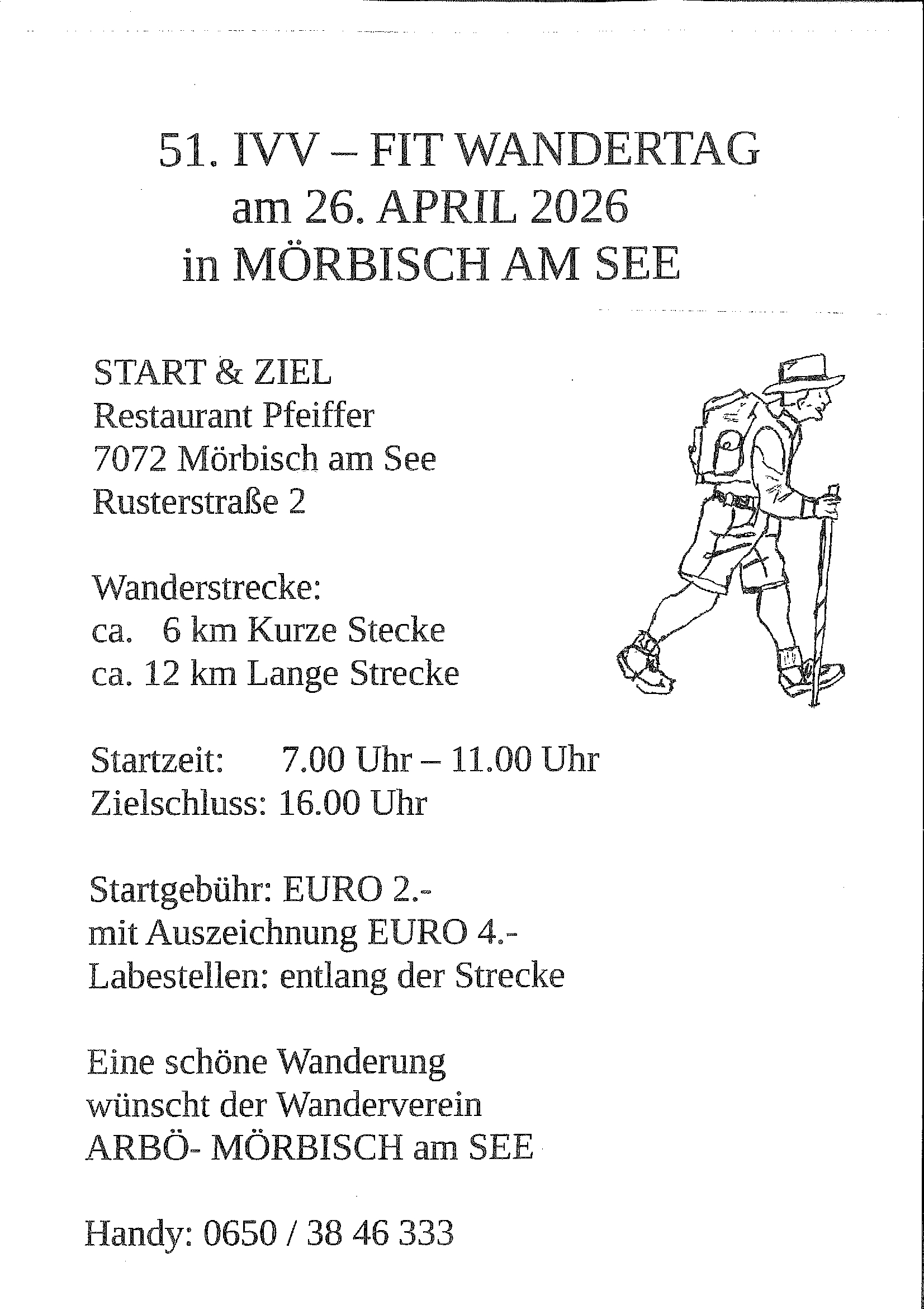 Ob ambitionierter Wanderfreund oder entspannter Spaziergänger – der Arbö-Wanderverein lädt Sie herzlich ein, die idyllische Umgebung von Mörbisch zu Fuß zu entdecken. Wählen Sie Ihre Wunschstrecke, genießen Sie die frische Luft und stärken Sie sich an den Verpflegungsstationen entlang der Route.